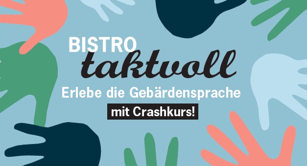 Erlebe die Gebärdensprache mit Craskurs.Das Bistroteam wird an den Taktvoll-Abenden von Mitarbeitenden der Organisation "sichtbar GEHÖRLOSE ZÜRICH" unterstützt. Bestellungen können in Gebärdensprache oder Lautsprache aufgegeben werden. Alle sind herzlich willkommen! Flyer klicken (PDF): 26_06_12_Flyer Bistrotaktvoll
