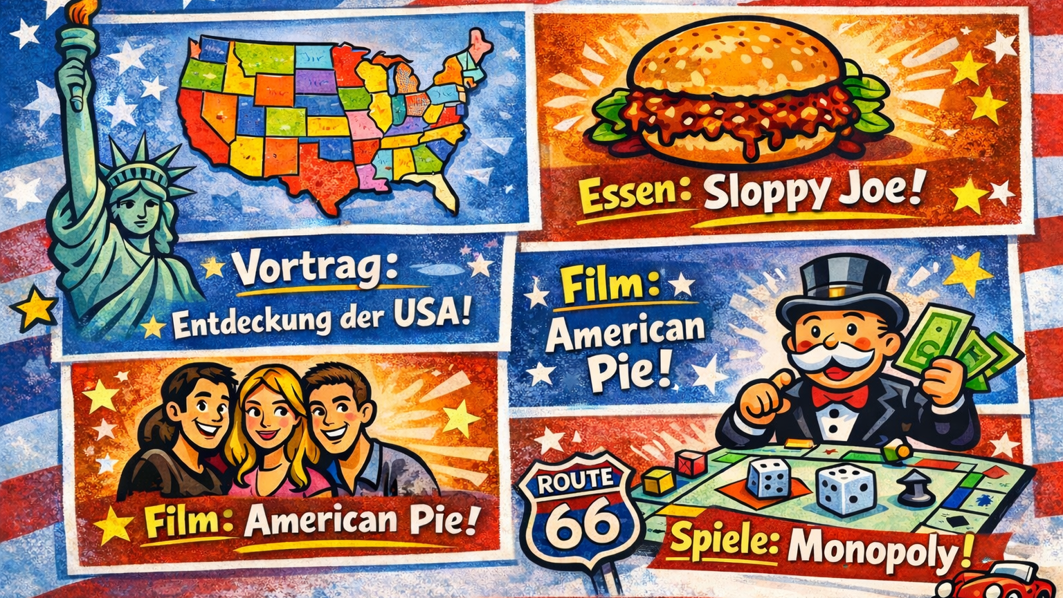 Es gibt einen Vortag über das Leben und die Kultur in den USA. Jeder Staat ist anders: Kalifornien ist nicht wie New York. Dazu gibt es Essen, Film und Spiel aus den USA. 16:00 – 17:30 Uhr Vortrag über die USA 18:00 Uhr ...