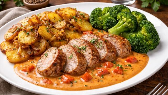 Schweinsfilet an Paprikarahmsauce, Broccoli